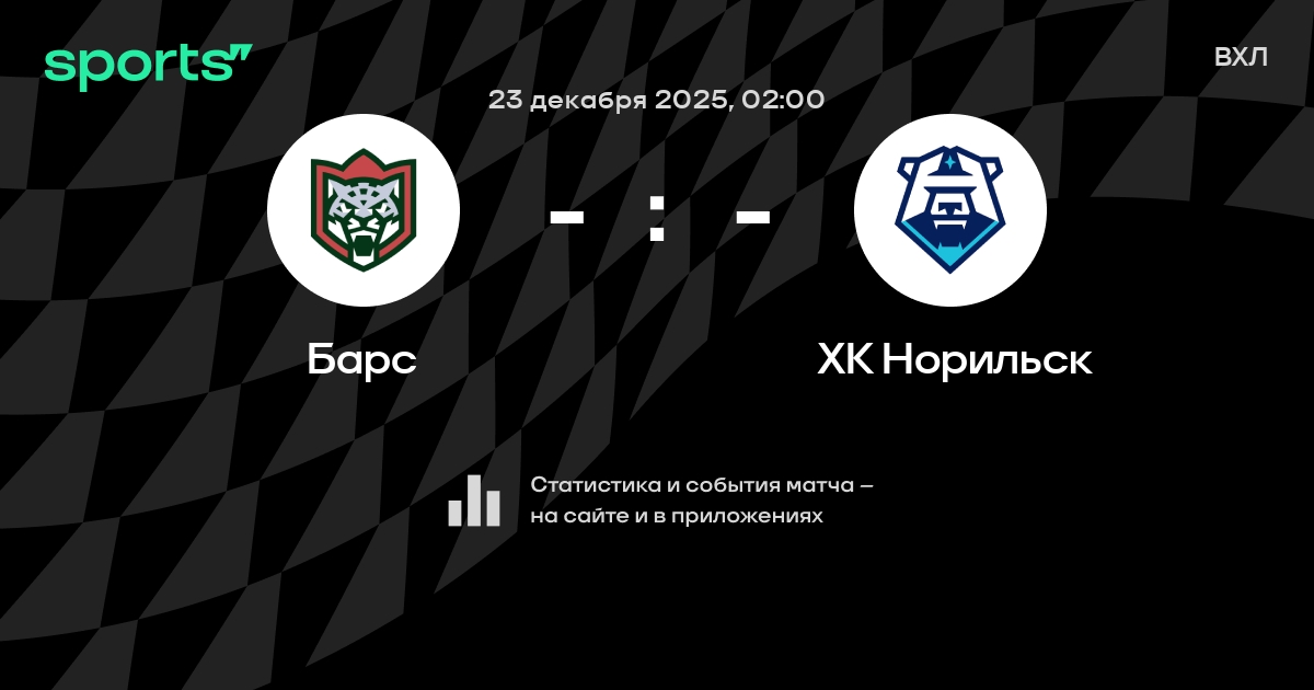 В предстоящем матче в рамках турнира ВХЛ пройдет встреча команд Барс - ХК Норильск в городе Казань (Россия) на стадионе Дворец спорта (вместимость - 3523).