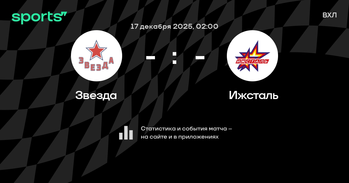 В предстоящем матче в рамках турнира ВХЛ пройдет встреча команд Звезда - Ижсталь в городе Москва (Россия) на стадионе ЦСКА-Арена.