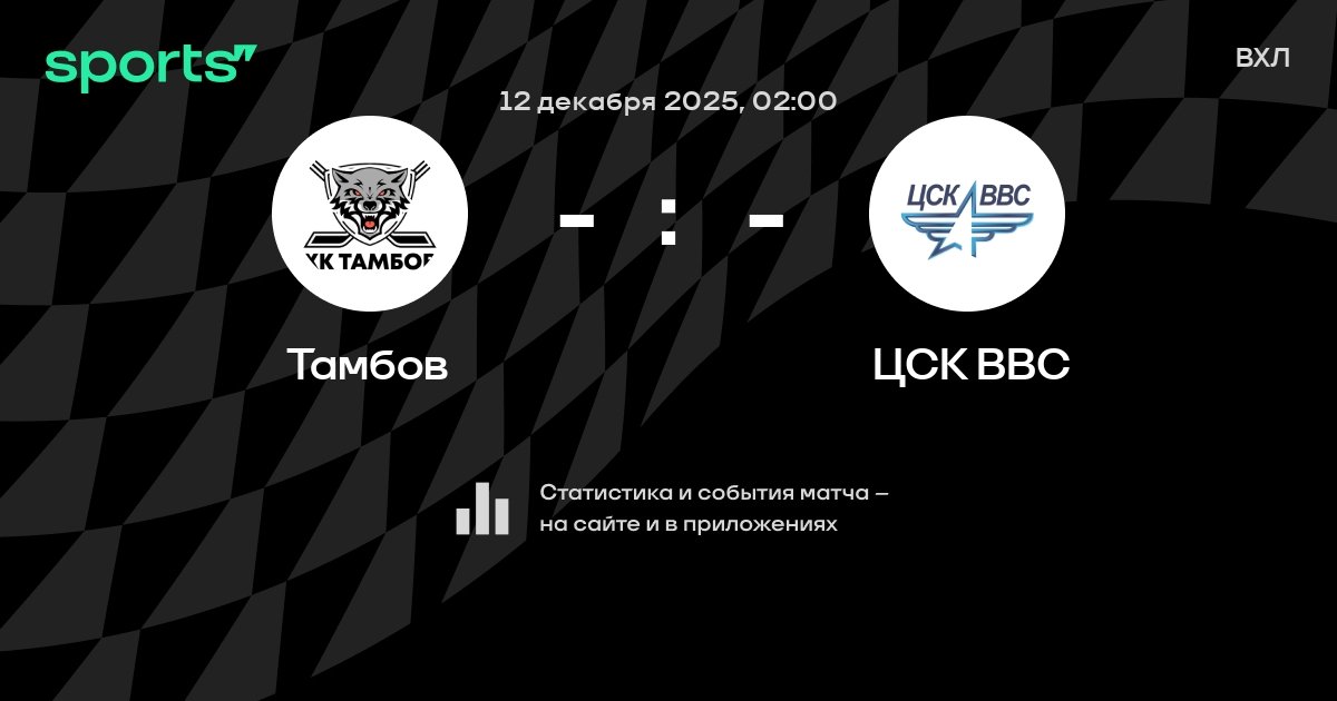 В предстоящем матче в рамках турнира ВХЛ пройдет встреча команд Тамбов - ЦСК ВВС в городе  на стадионе Sports Palace Crystal.