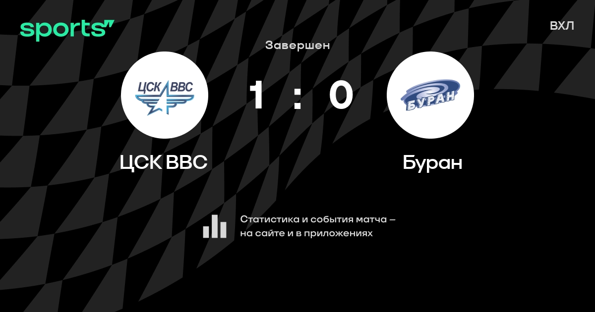 В прошедшем матче в рамках турнира ВХЛ состоялась встреча команд ЦСК ВВС - Буран в городе на стадионе Dvorets sporta im. V. S. Vysotskogo