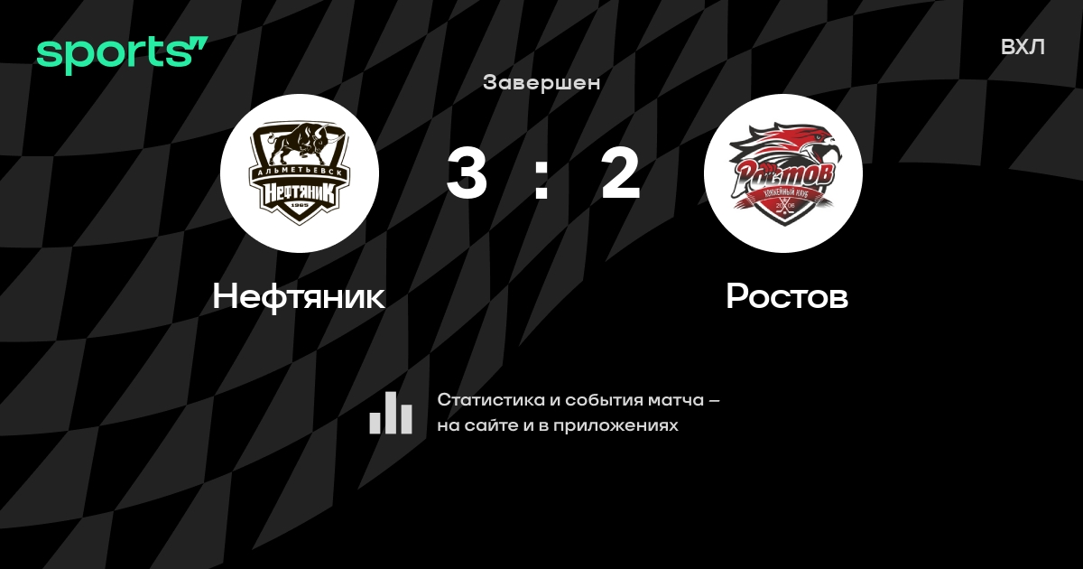 В прошедшем матче в рамках турнира ВХЛ состоялась встреча команд Нефтяник - Ростов в городе на стадионе Dvorets Sporta Yubileynyy