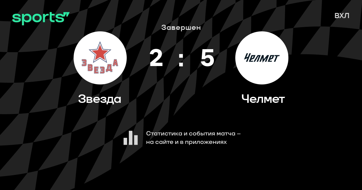 В прошедшем матче в рамках турнира ВХЛ состоялась встреча команд Звезда - Челмет в городе Москва (Россия) на стадионе ЦСКА-Арена