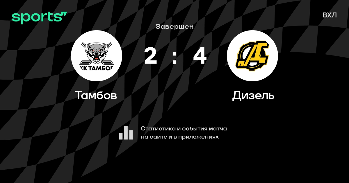 В прошедшем матче в рамках турнира ВХЛ состоялась встреча команд Тамбов - Дизель в городе на стадионе Sports Palace Crystal