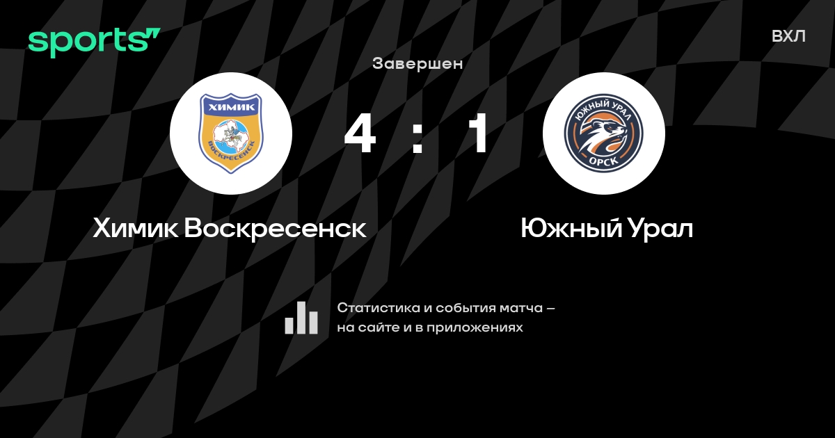 В прошедшем матче в рамках турнира ВХЛ состоялась встреча команд Химик Воскресенск - Южный Урал в городе на стадионе Podmoskovie Ice Palace