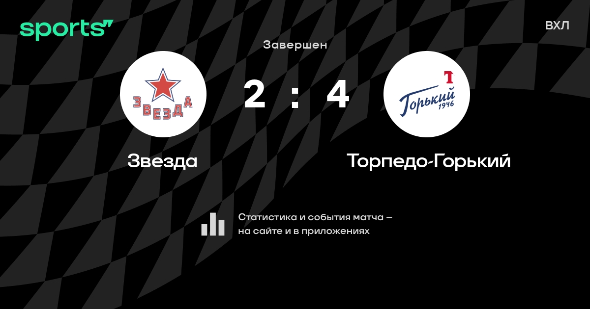 В прошедшем матче в рамках турнира ВХЛ состоялась встреча команд Звезда - Торпедо-Горький в городе Москва (Россия) на стадионе ЦСКА-Арена