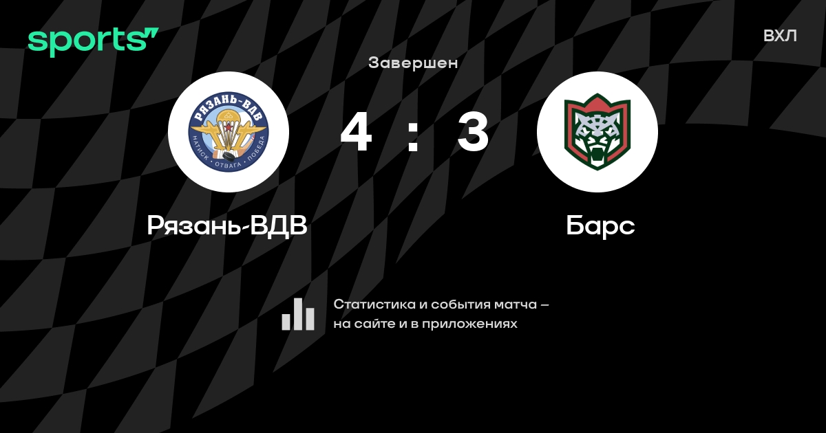 В прошедшем матче в рамках турнира ВХЛ состоялась встреча команд Рязань-ВДВ - Барс в городе на стадионе The Palace of sports Olimpiyskiy