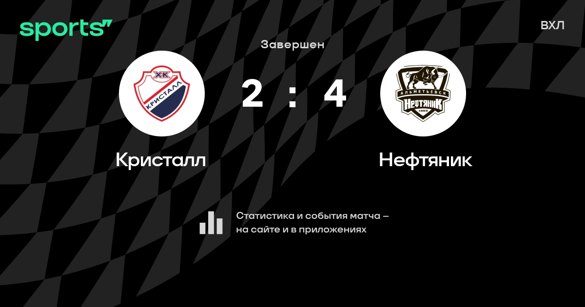 В прошедшем матче в рамках турнира ВХЛ состоялась встреча команд Кристалл - Нефтяник в городе на стадионе Ledovyy dvorets sporta Kristall