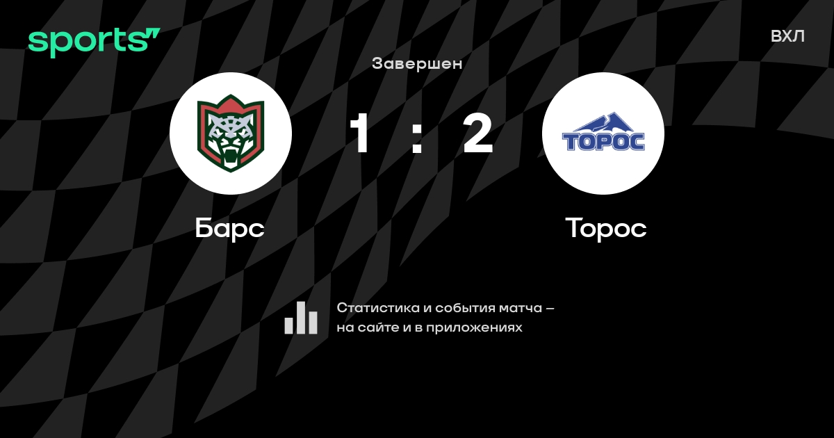 В прошедшем матче в рамках турнира ВХЛ состоялась встреча команд Барс - Торос в городе Казань (Россия) на стадионе Дворец спорта (вместимость - 3523)