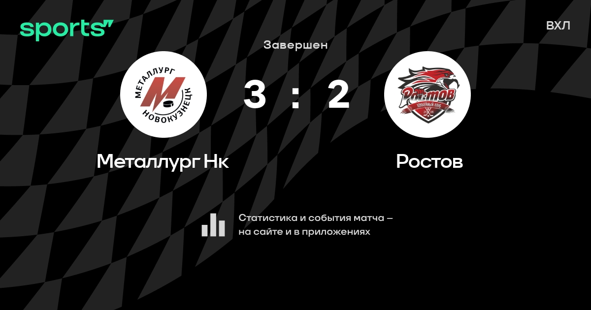 В прошедшем матче в рамках турнира ВХЛ состоялась встреча команд Металлург Нк - Ростов в городе на стадионе Dvorets sporta Kuznetsk Metallurg