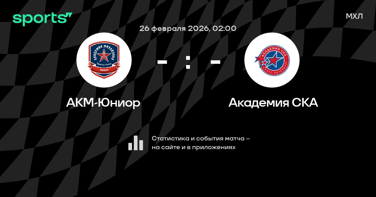 В предстоящем матче в рамках турнира МХЛ пройдет встреча команд АКМ-Юниор - Академия СКА в городе на стадионе Ice Palace.