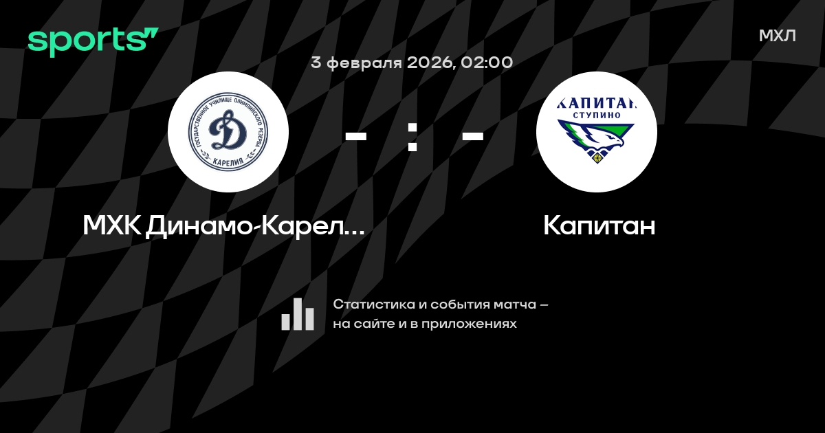 В предстоящем матче в рамках турнира МХЛ пройдет встреча команд МХК Динамо-Карелия - Капитан .