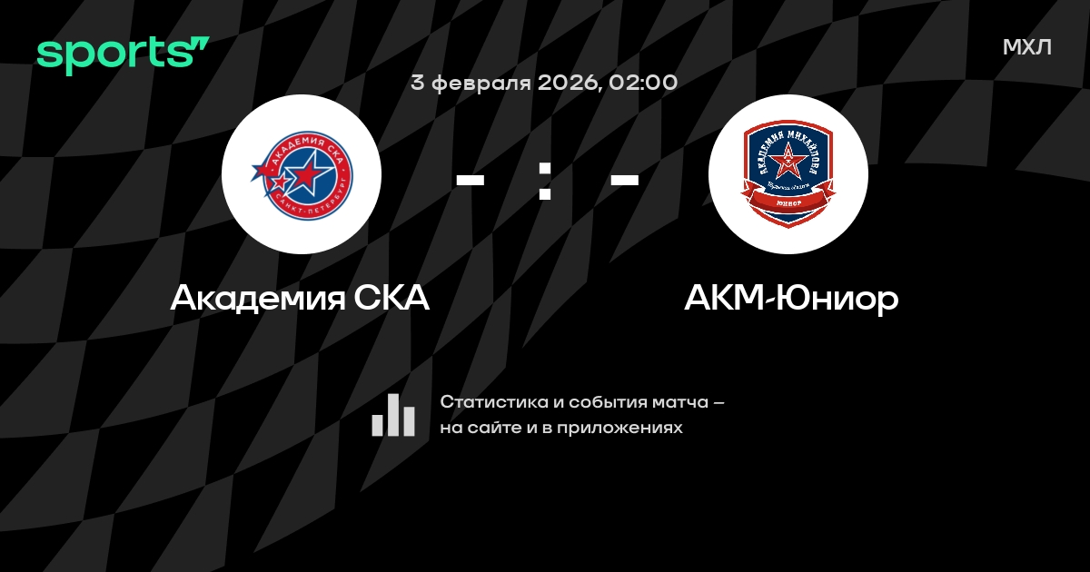 В предстоящем матче в рамках турнира МХЛ пройдет встреча команд Академия СКА - АКМ-Юниор в городе на стадионе Hockey City.