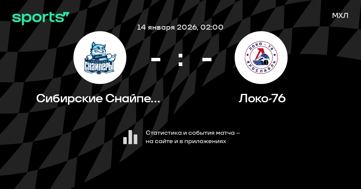 В предстоящем матче в рамках турнира МХЛ пройдет встреча команд Сибирские Снайперы - Локо-76 в городе Новосибирск (Россия) на стадионе Арена-Сибирь (вместимость - 10587).