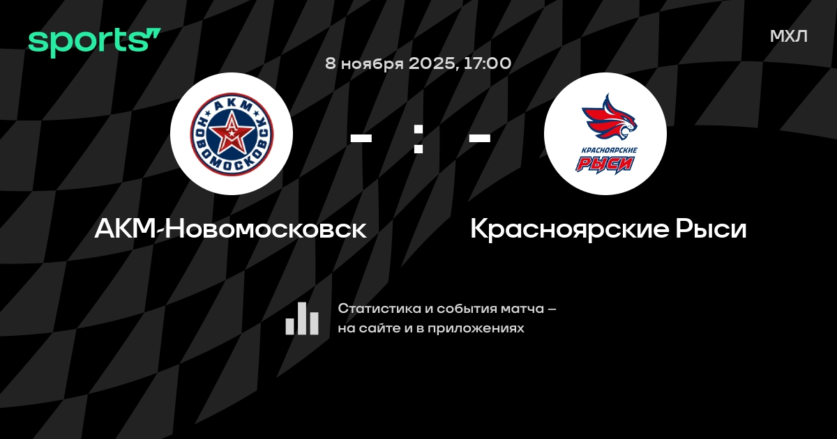 В предстоящем матче в рамках турнира МХЛ пройдет встреча команд АКМ-Новомосковск - Красноярские Рыси в городе на стадионе Ledovyy Dvorets Yubileynyy.