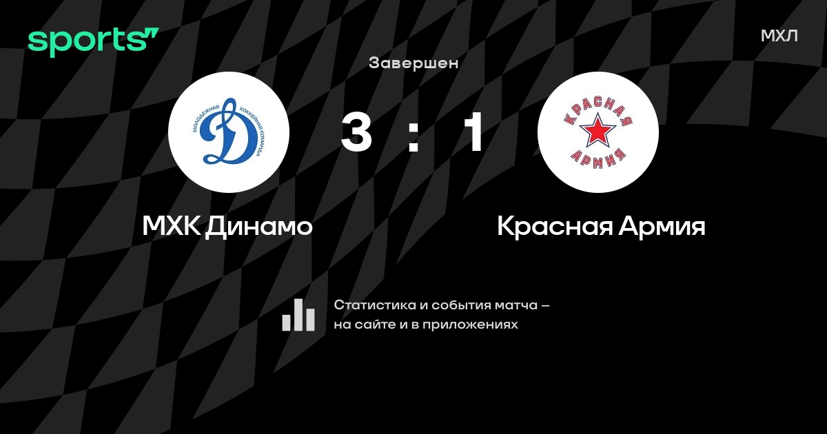 В прошедшем матче в рамках турнира МХЛ состоялась встреча команд МХК Динамо - Красная Армия в городе Москва (Россия) на стадионе ВТБ-Арена