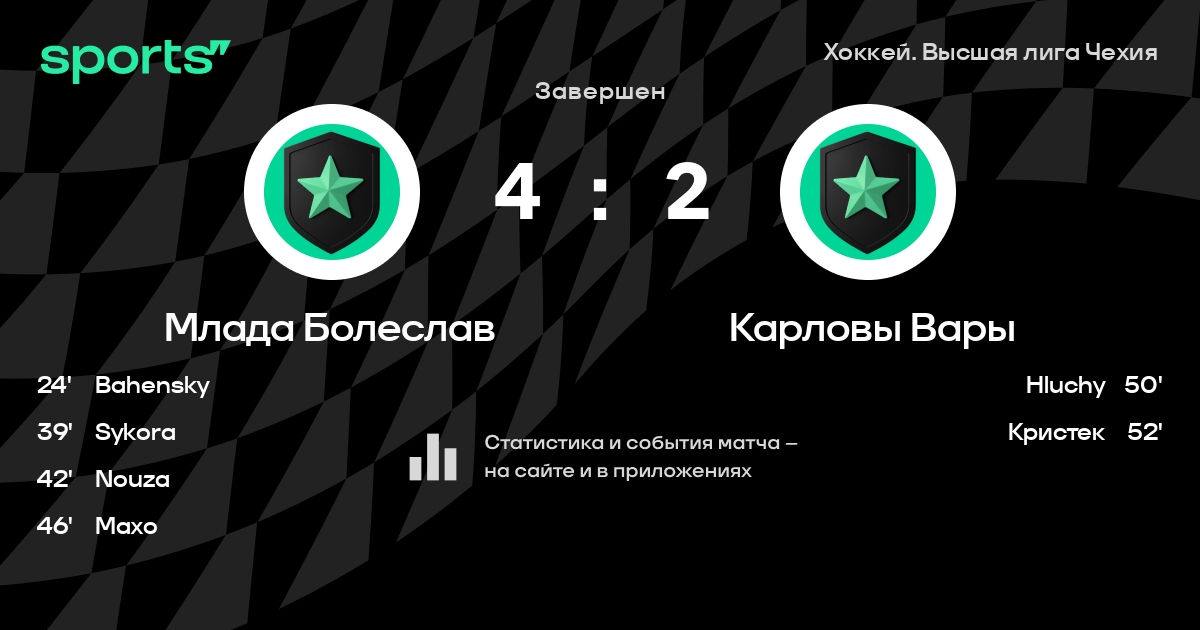 В прошедшем матче в рамках турнира Хоккей. Высшая лига Чехия состоялась встреча команд Млада Болеслав - Карловы Вары