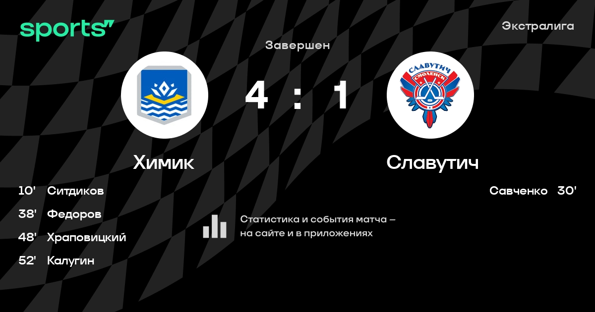 В прошедшем матче в рамках турнира Экстралига состоялась встреча команд Химик - Славутич в городе Новополоцк (Беларусь) на стадионе Дворец культуры и спорта (вместимость - 1200)