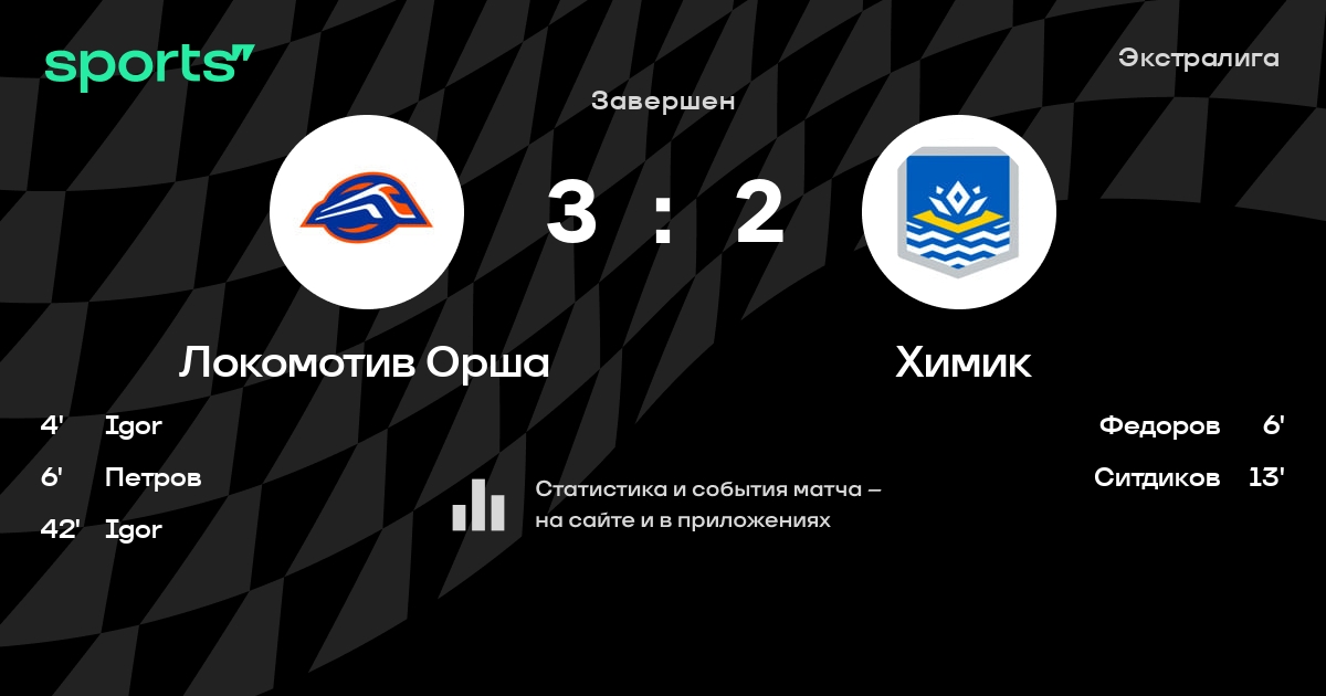 В прошедшем матче в рамках турнира Экстралига состоялась встреча команд Локомотив Орша - Химик в городе Орша (Беларусь) на стадионе Ледовая арена Орша (вместимость - 3500)