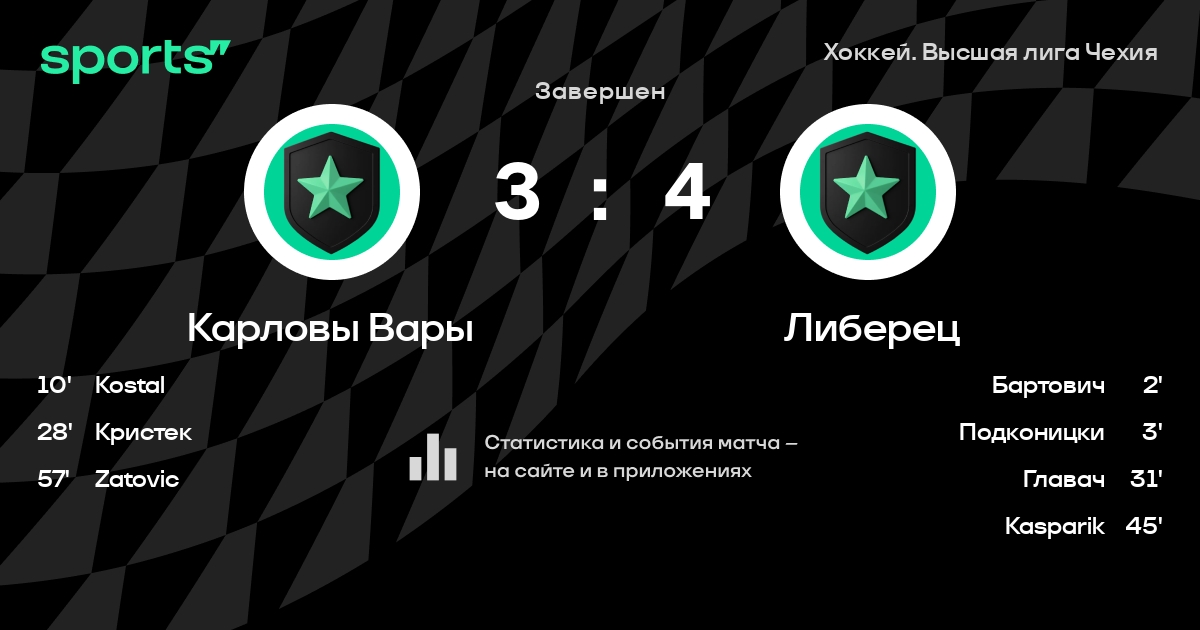 В прошедшем матче в рамках турнира Хоккей. Высшая лига Чехия состоялась встреча команд Карловы Вары - Либерец
