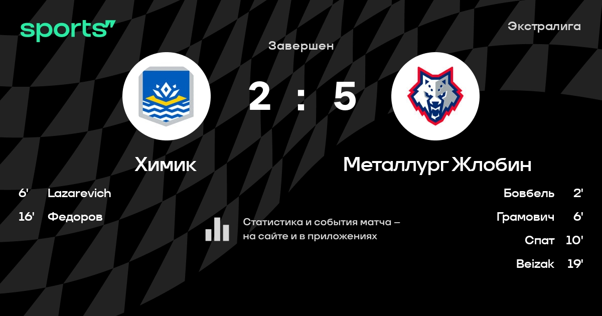 В прошедшем матче в рамках турнира Экстралига состоялась встреча команд Химик - Металлург Жлобин в городе Новополоцк (Беларусь) на стадионе Дворец культуры и спорта (вместимость - 1200)