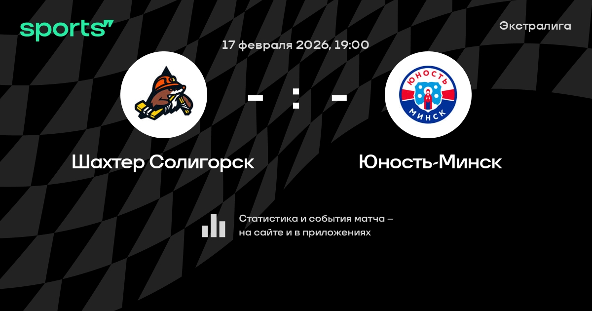 В предстоящем матче в рамках турнира Экстралига пройдет встреча команд Шахтер Солигорск - Юность-Минск в городе Солигорск (Беларусь) на стадионе Ледовый дворец спорта Солигорск (вместимость - 1800).