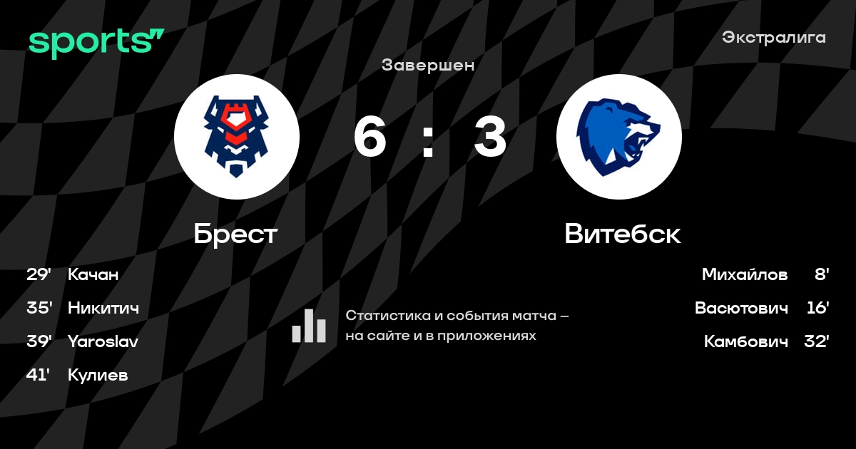 В прошедшем матче в рамках турнира Экстралига состоялась встреча команд Брест - Витебск в городе Брест (Беларусь) на стадионе Ледовый дворец Брест (вместимость - 2000)