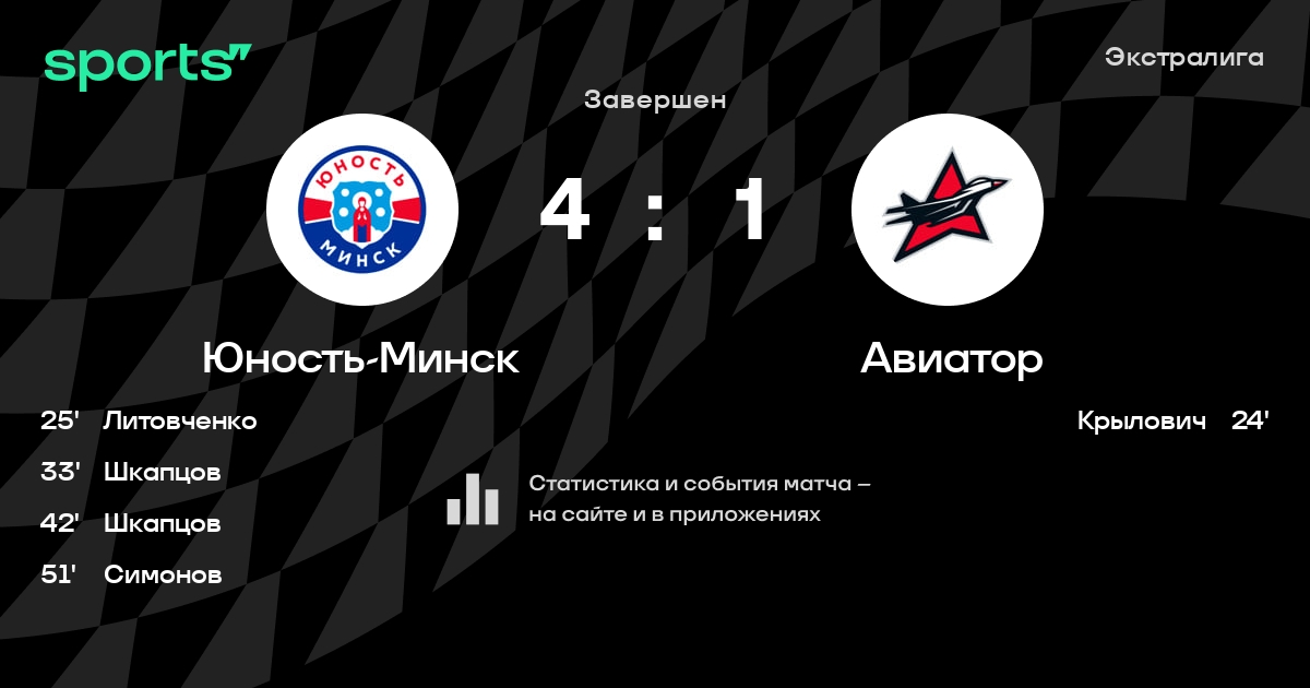 В прошедшем матче в рамках турнира Экстралига состоялась встреча команд Юность-Минск - Авиатор в городе Минск (Беларусь) на стадионе Чижовка-Арена (вместимость - 9487)
