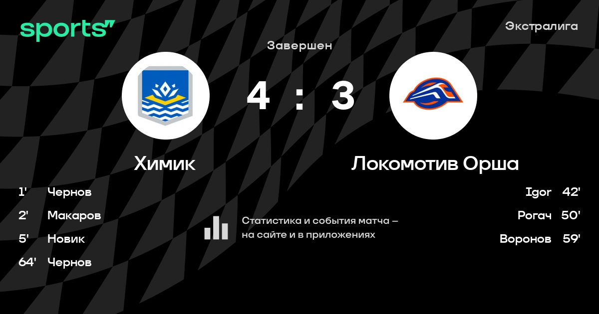 В прошедшем матче в рамках турнира Экстралига состоялась встреча команд Химик - Локомотив Орша в городе Новополоцк (Беларусь) на стадионе Дворец культуры и спорта (вместимость - 1200)