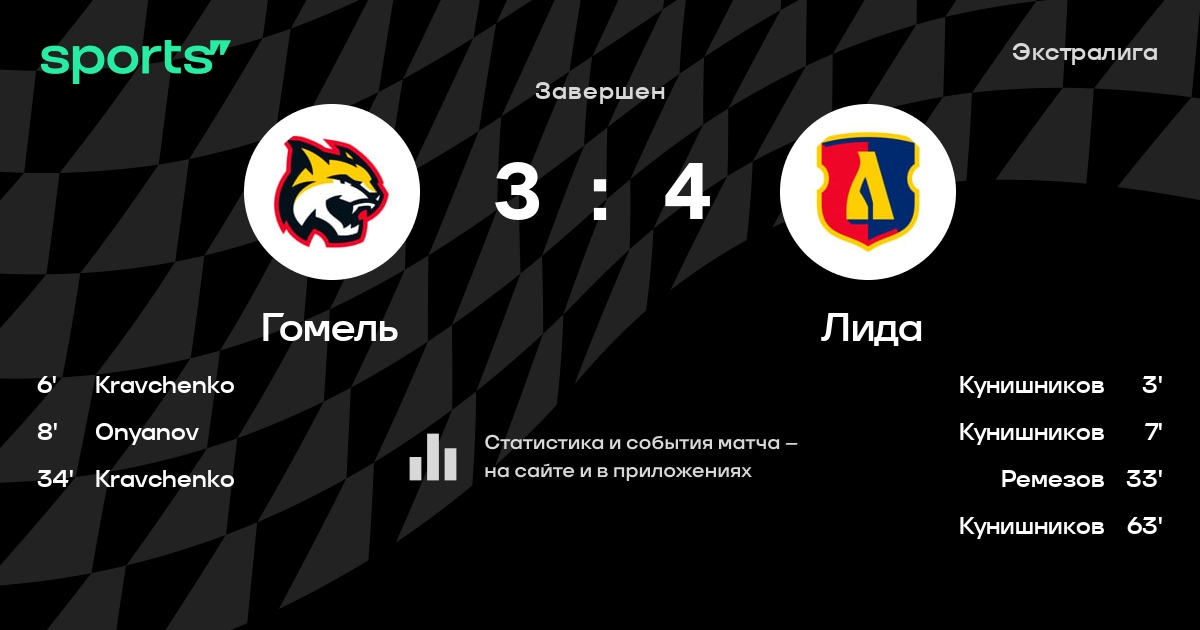 В прошедшем матче в рамках турнира Экстралига состоялась встреча команд Гомель - Лида в городе Гомель (Беларусь) на стадионе Ледовый дворец Гомель (вместимость - 2700)
