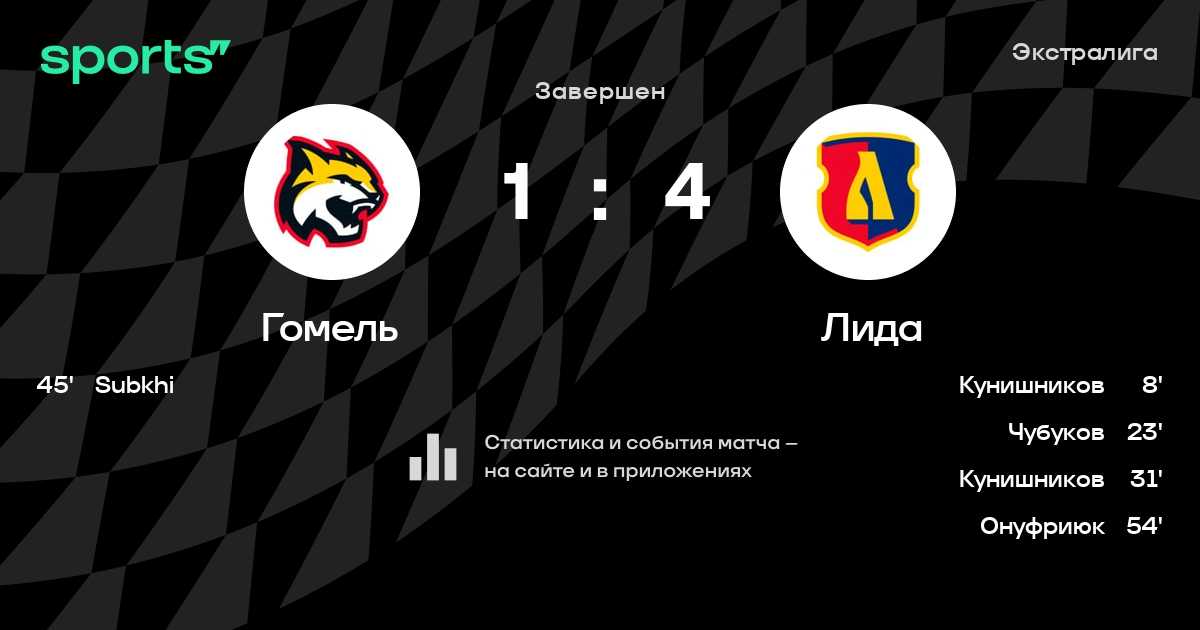 В прошедшем матче в рамках турнира Экстралига состоялась встреча команд Гомель - Лида в городе Гомель (Беларусь) на стадионе Ледовый дворец Гомель (вместимость - 2700)