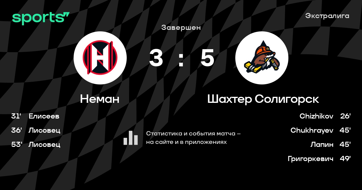 В прошедшем матче в рамках турнира Экстралига состоялась встреча команд Неман - Шахтер Солигорск в городе Солигорск (Беларусь) на стадионе Ледовый дворец спорта Солигорск (вместимость - 1800)