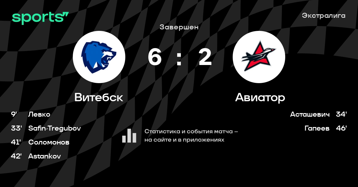 В прошедшем матче в рамках турнира Экстралига состоялась встреча команд Витебск - Авиатор в городе Витебск (Беларусь) на стадионе Витебский дворец спорта (вместимость - 2000)