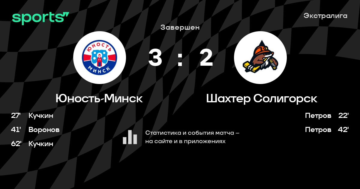 В прошедшем матче в рамках турнира Экстралига состоялась встреча команд Юность-Минск - Шахтер Солигорск в городе Минск (Беларусь) на стадионе Чижовка-Арена (вместимость - 9487)
