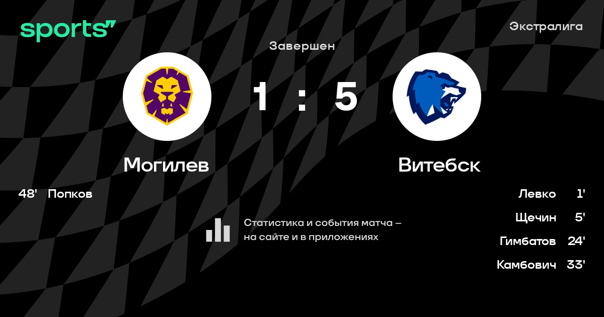 В прошедшем матче в рамках турнира Экстралига состоялась встреча команд Могилев - Витебск в городе Могилев (Беларусь) на стадионе Ледовый дворец спорта Могилев (вместимость - 3048)