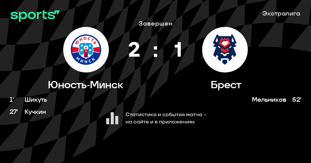 В прошедшем матче в рамках турнира Экстралига состоялась встреча команд Юность-Минск - Брест в городе Минск (Беларусь) на стадионе Чижовка-Арена (вместимость - 9487)