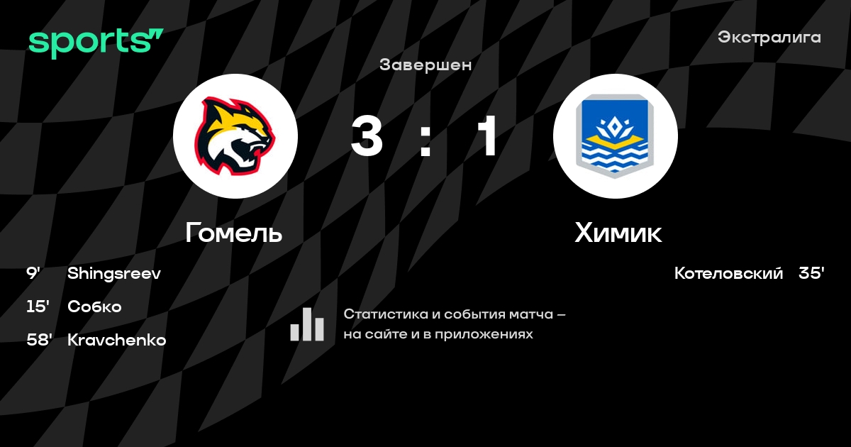 В прошедшем матче в рамках турнира Экстралига состоялась встреча команд Гомель - Химик в городе Гомель (Беларусь) на стадионе Ледовый дворец Гомель (вместимость - 2700)
