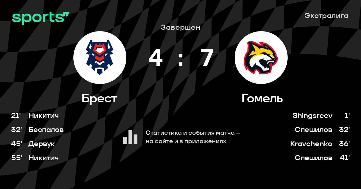 В прошедшем матче в рамках турнира Экстралига состоялась встреча команд Брест - Гомель в городе Брест (Беларусь) на стадионе Ледовый дворец Брест (вместимость - 2000)