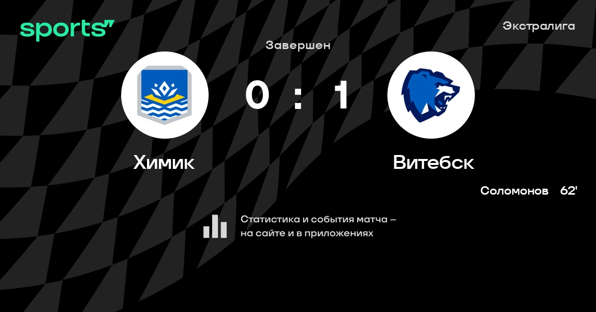 В прошедшем матче в рамках турнира Экстралига состоялась встреча команд Химик - Витебск в городе Новополоцк (Беларусь) на стадионе Дворец культуры и спорта (вместимость - 1200)
