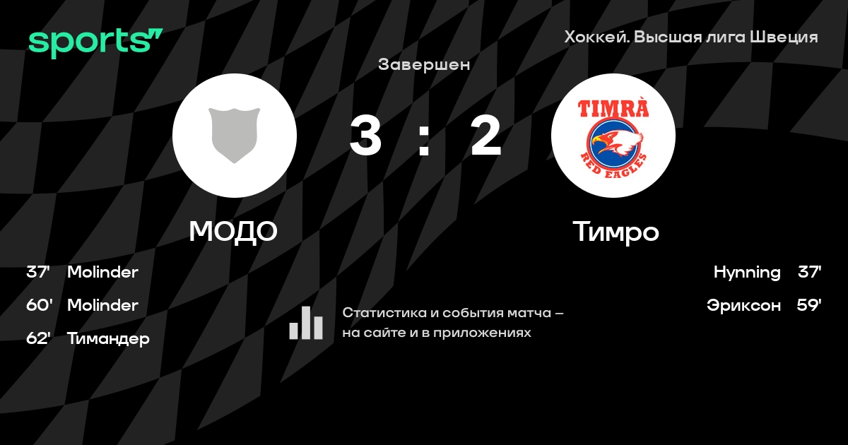 В прошедшем матче в рамках турнира Хоккей. Высшая лига Швеция состоялась встреча команд МОДО - Тимро