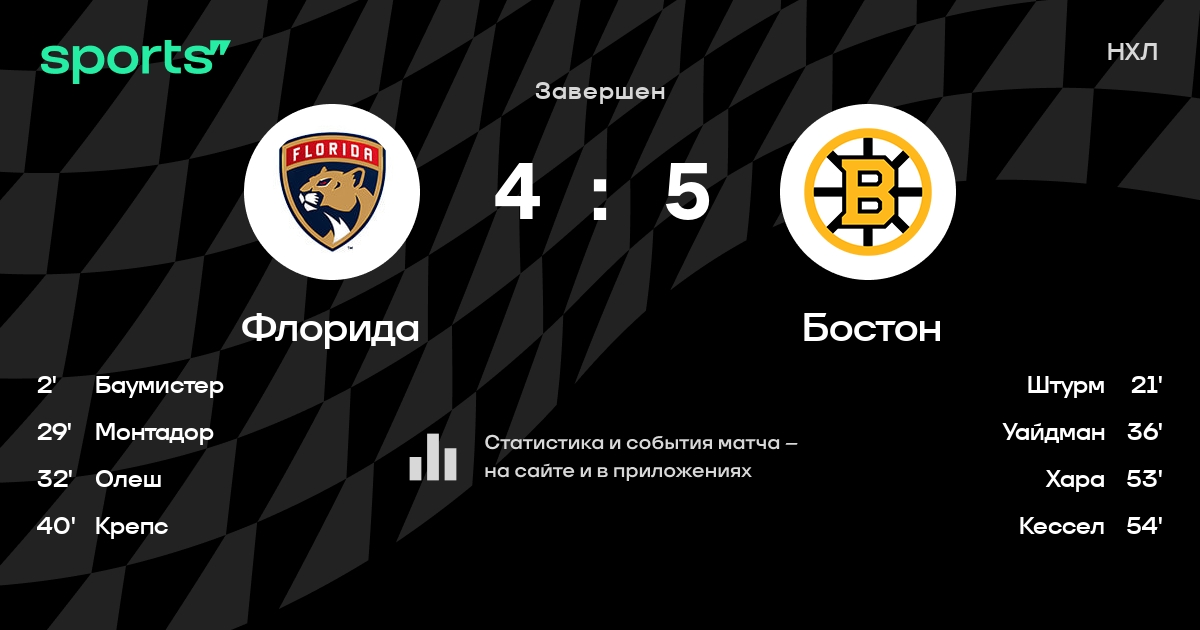 Как прошел матч, смотрите в текстовой трансляции Флорида - Бостон на Sports.ru