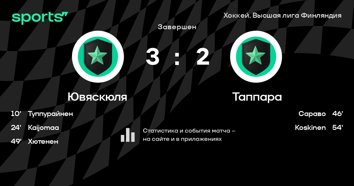 В прошедшем матче в рамках турнира Хоккей. Высшая лига Финляндия состоялась встреча команд Ювяскюля - Таппара