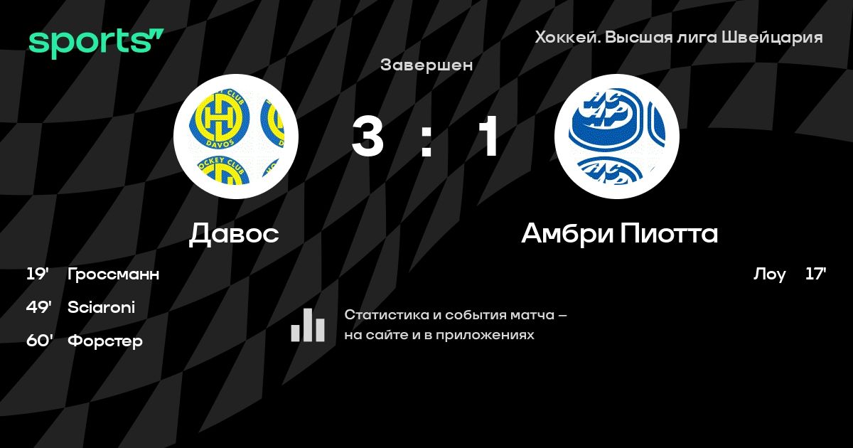 В прошедшем матче в рамках турнира Хоккей. Высшая лига Швейцария состоялась встреча команд Давос - Амбри Пиотта