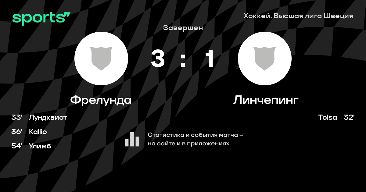 В прошедшем матче в рамках турнира Хоккей. Высшая лига Швеция состоялась встреча команд Фрелунда - Линчепинг