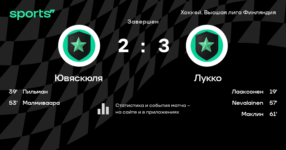 В прошедшем матче в рамках турнира Хоккей. Высшая лига Финляндия состоялась встреча команд Ювяскюля - Лукко