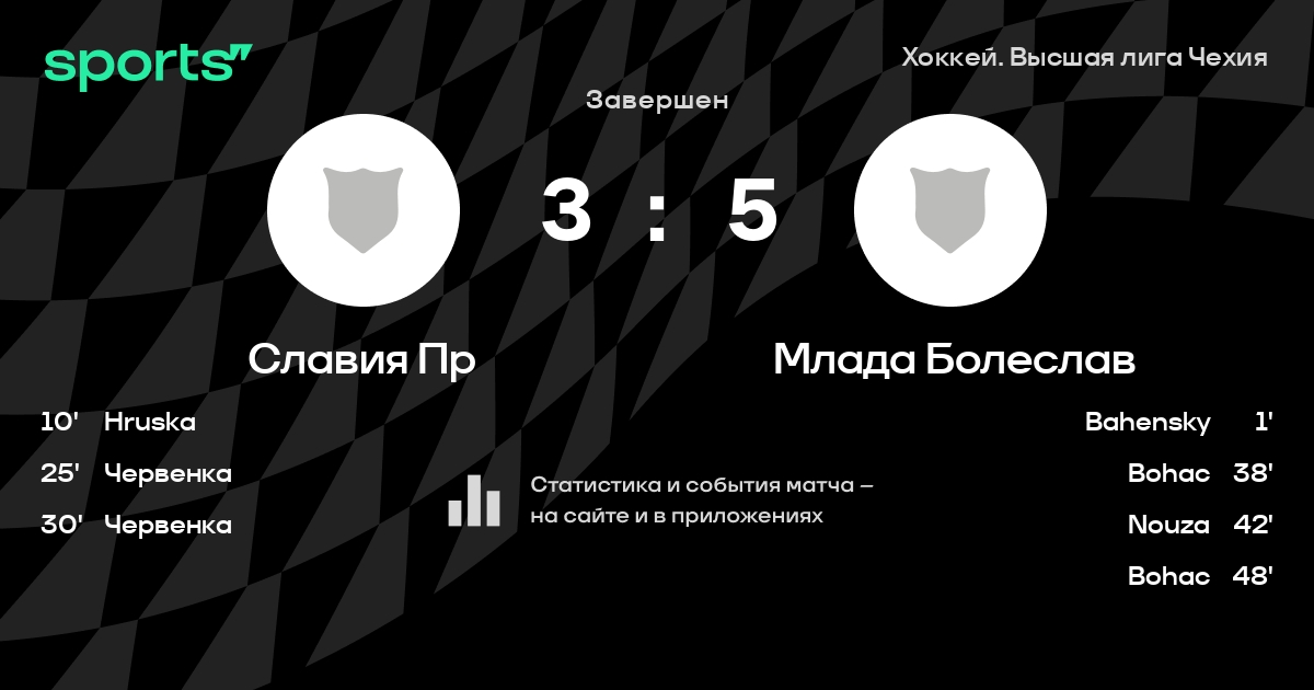 В прошедшем матче в рамках турнира Хоккей. Высшая лига Чехия состоялась встреча команд Славия Пр - Млада Болеслав
