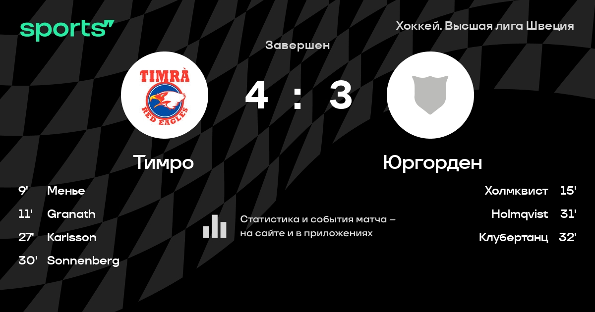 В прошедшем матче в рамках турнира Хоккей. Высшая лига Швеция состоялась встреча команд Тимро - Юргорден