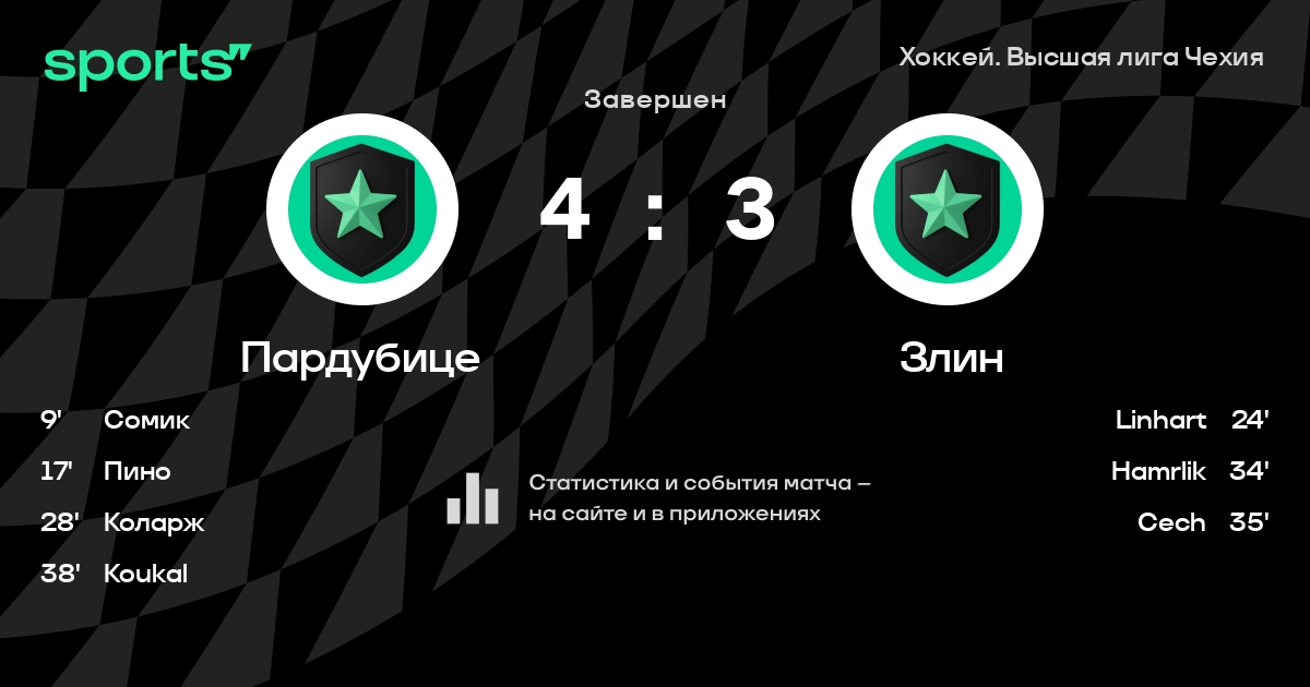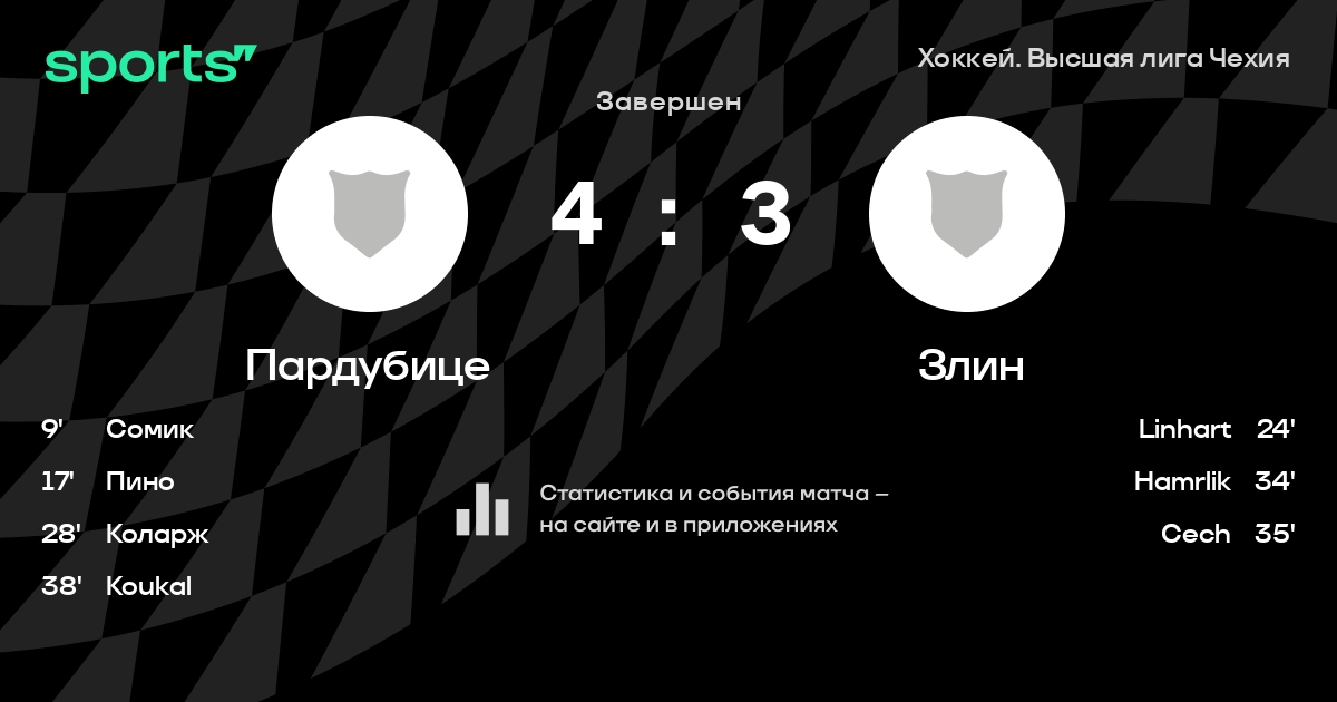 В прошедшем матче в рамках турнира Хоккей. Высшая лига Чехия состоялась встреча команд Пардубице - Злин