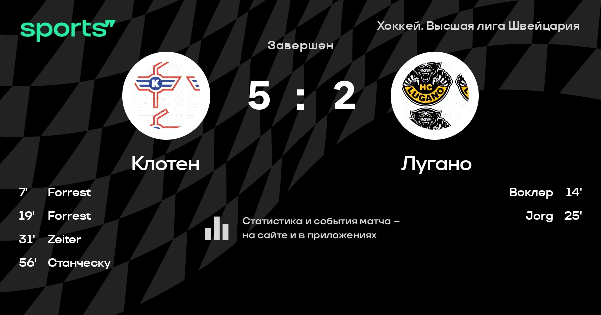 В прошедшем матче в рамках турнира Хоккей. Высшая лига Швейцария состоялась встреча команд Клотен - Лугано