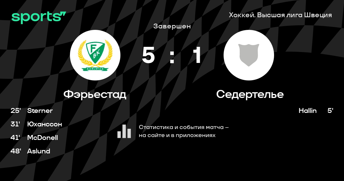 В прошедшем матче в рамках турнира Хоккей. Высшая лига Швеция состоялась встреча команд Фэрьестад - Седертелье