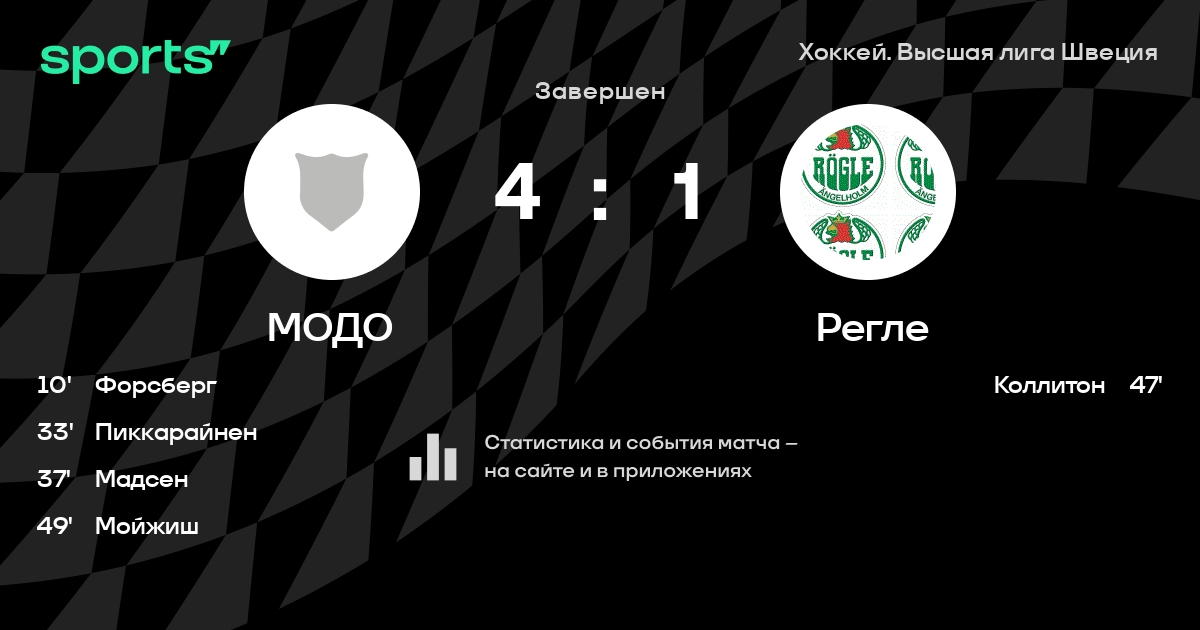 В прошедшем матче в рамках турнира Хоккей. Высшая лига Швеция состоялась встреча команд МОДО - Регле
